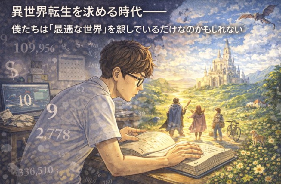 ライフプラン・海外移住 異世界転生を求める時代──僕たちは「最適な世界」を探しているだけなのかもしれない Author イエス・オティアス Date 2026年1月10日 異世界転生ものが相変わらず人気だ。小説でもアニメでも、似たような設定が量産されているのに、なぜか飽きられない。