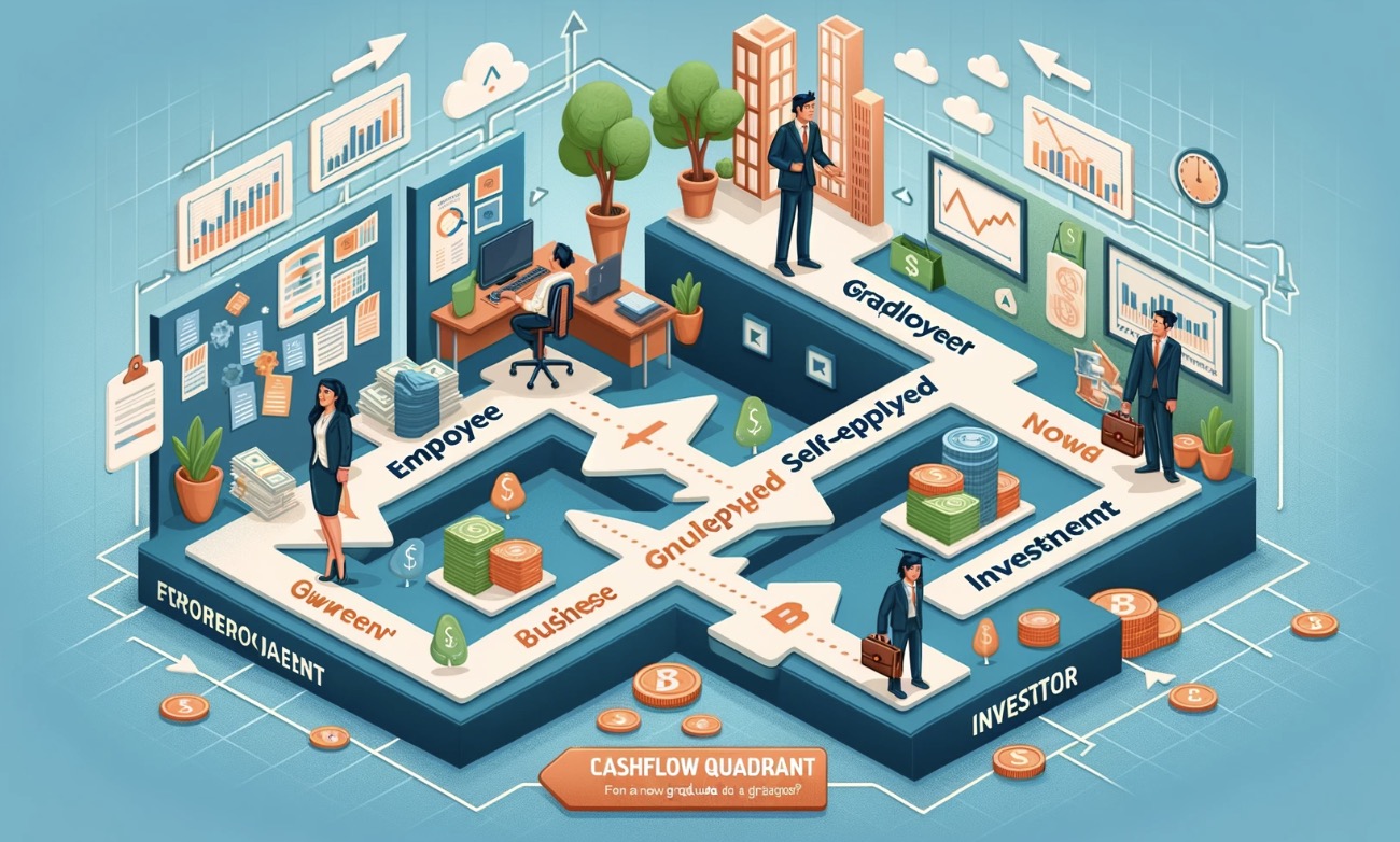 ライフプラン・海外移住 クワドラントに基づく新卒サラリーマンから投資家へのキャリアパス Author イエス・オティアス Date 2024年6月26日 ロバート・キヨサキ氏の『金持ち父さん貧乏父さん』で紹介されたキャッシュフロークワドラント(E:従業員、S:自営
