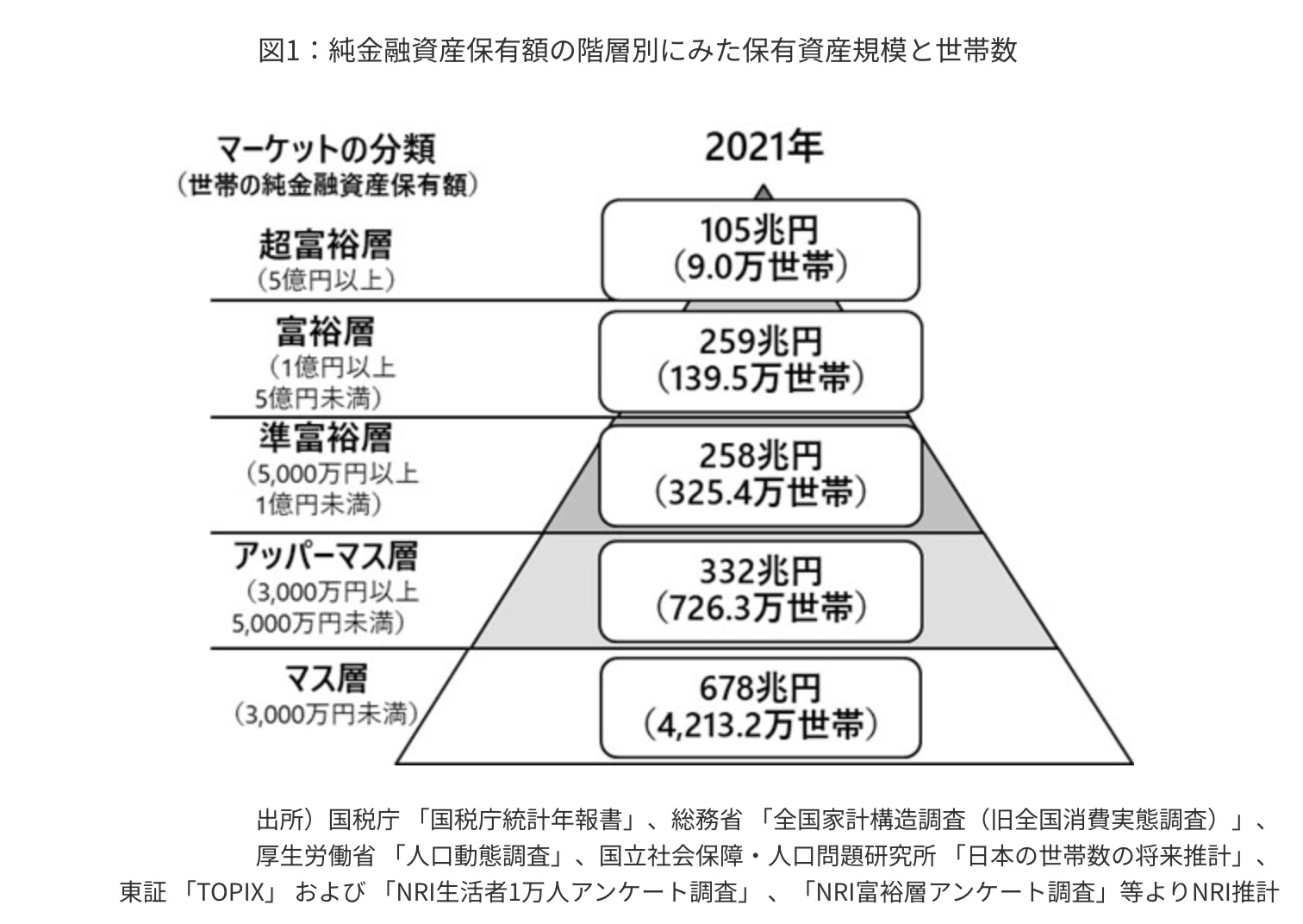 ライフハック, ライフプラン・海外移住 日本の富裕層ピラミッドは見直しが必要 Author イエス・オティアス Date 2024年7月30日 日本の経済情勢は変化し続けていますが、富裕層の定義とその基準については、過去のデータや概念に頼りがちです。野村